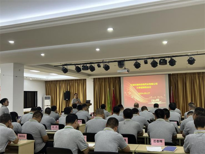2024年9月24日—9月28日,寧波科瑞特動(dòng)物藥業(yè)有限公司召開了“2024年科瑞特三季度”銷售會議??迫鹛毓靖邔宇I(lǐng)導(dǎo)、各部門負(fù)責(zé)人、各區(qū)域銷售精英等齊聚一堂,對上半年的工作進(jìn)行全面復(fù)盤,對第四季度的銷售工作進(jìn)行調(diào)整規(guī)劃。